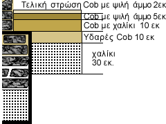 Συμπιεσμένο χαλίκι (30εκατοστά) ![]() Η πρώτη στρώση αποτελείται από καλά συμπιεσμένο χαλίκι περίπου 30 εκατοστά, το οποίο τοποθετείται πάνω από σκληρό έδαφος. Η τοποθέτηση του χαλικιού γίνεται διαδοχικά σε 2 στρώσεις των 15 εκατοστών, οι οποίες συμπιέζονται ξεχωριστά. Έτσι διασφαλίζουμε την μέγιστη δυνατή συμπίεση αποφεύγοντας προβλήματα στο μέλλον. Όταν τελειώσουμε φροντίζουμε η επιφάνεια να είναι αλφαδιασμένη. |