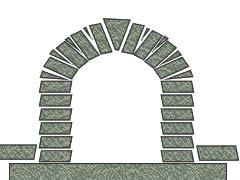 Η τελευταία πέτρα που τοποθετούμε είναι αυτή που κλειδώνει την κατασκευή μας και είναι ειδικά διαμορφωμένη έτσι ώστε να χωράει στο άνοιγμα και όσο πιέζεται από το βάρος της να κλειδώνει ακόμα περισσότερο την καμάρα. |