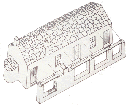 ![]() Τα σπίτια αυτά βασίζονται στην φιλοσοφία των Πυργαριών, αλλά το έξτρα δωμάτιο προστήθετε κατά μήκος και συνήθως σταδιακά. Συνήθως τα σπίτια αυτά τα φτιάχναν όσοι δεν είχαν την οικονομική δυνατότητα και την τεχνογνωσία να φτιάξουν Πυργάρι. |