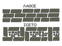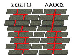 Τοίχος σε Πέτρινα Κτίσματα Ο πέτρινος τοίχος συνήθως δεν είναι μικρότερος από 60 εκ και χτίζεται με την βοήθεια συνεκτικού υλικού. Αποφεύγουμε τις μεγάλες ευθείες αρμών ![]() Φροντίζουμε να μην δημιουργούμε μεγάλες ευθείες γραμμές αρμού, αλλά κάθε πέτρα να επικαθετε πάνω στον αρμό που δημιουργούν οι προηγούμενες. Στην αντίθετη περίπτωση το κτήριο μας ενδέχετε να ριγματώσει πιο εύκολα. |