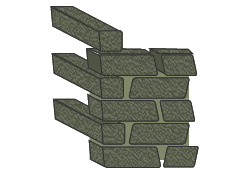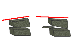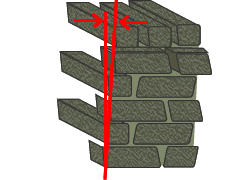Αποφεύγουμε κλίσεις οι οποίες οδηγούν την επόμενη στρώση προς τα έξω, απλά χρησιμοποιώντας μικρές πέτρες (φτεναδάκια) και αλλάζοντας την κλίση προς το κέντρο του τοίχου. |